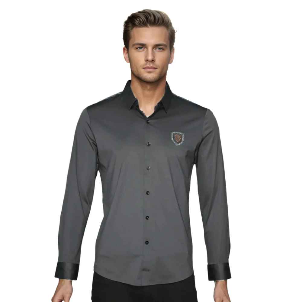 This Giorgio Armani Grey Premium Embroidered Logo Shirt features embroidered details for a touch of elegance. Made with premium materials, this shirt exudes sophistication and style. Elevate your wardrobe with this iconic logo shirt from a renowned fashion brand.