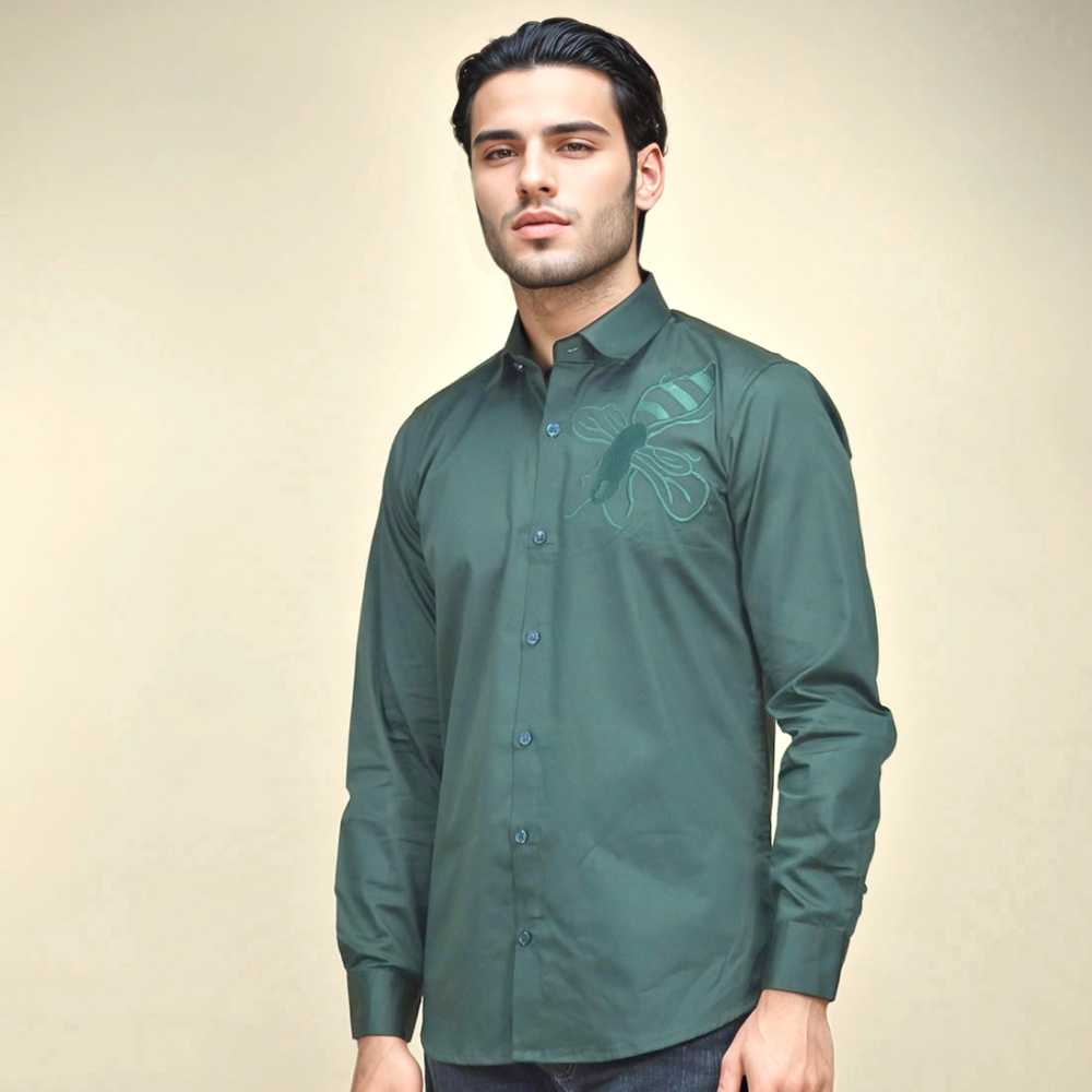 Elevate your wardrobe with the Gucci Bee Embroidered Green Premium Shirt from Vogue Mine. This luxurious shirt features intricate bee embroidery on high-quality green fabric, combining sophistication with a touch of whimsy. Perfect for any occasion, its premium craftsmanship ensures both comfort and style. Make a bold fashion statement with this timeless Gucci piece.