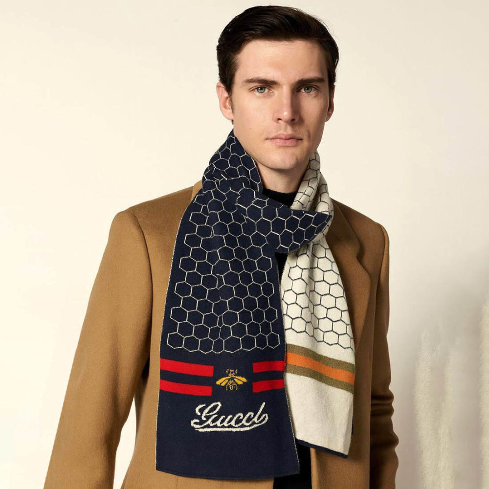 LATEST EDITION GUCCI BEE MUFFLER WITH HONEYCOMB PATTERN