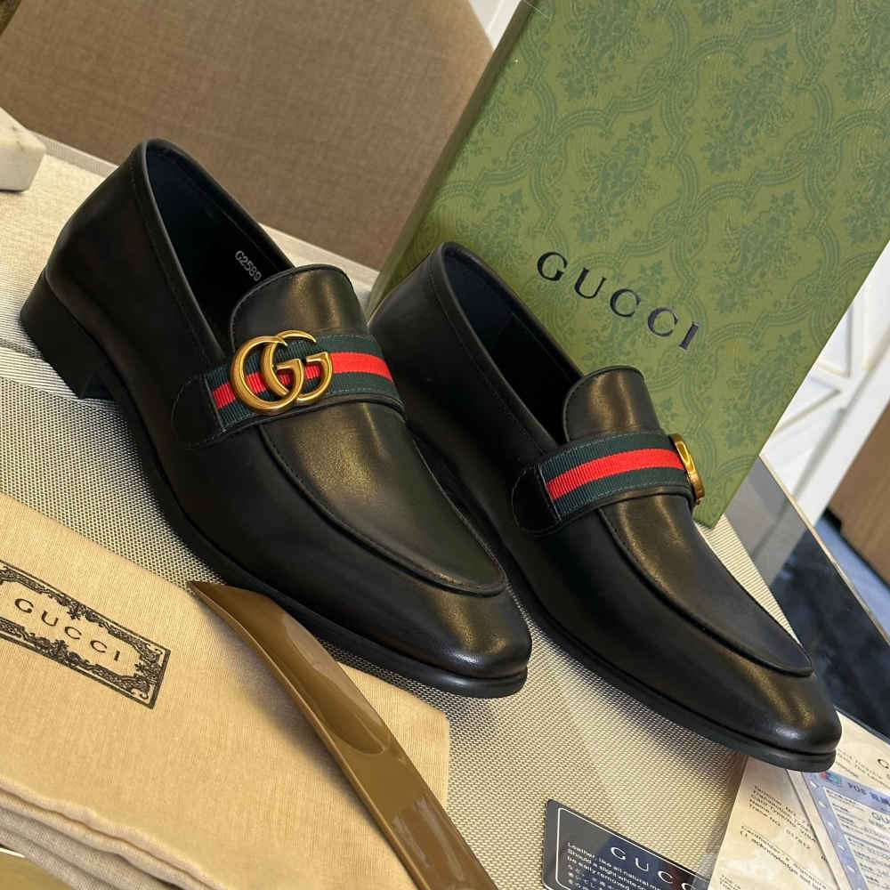 Experience luxury and sophistication with these premium-quality black loafers from Gucci. Crafted with meticulous attention to detail, these loafers offer unmatched comfort and style. Perfect for the modern man, elevate your wardrobe with these timeless loafers.