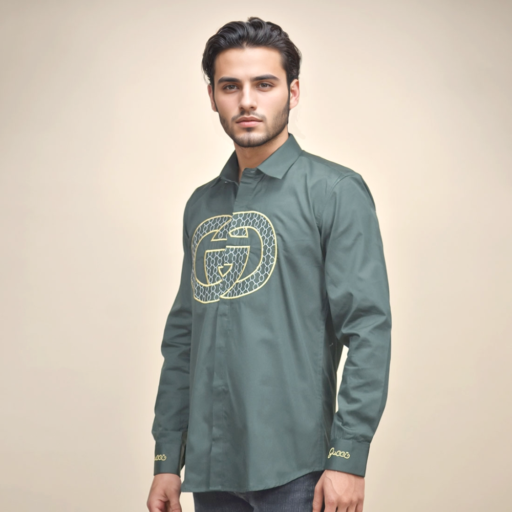 Discover elegance with the Gucci Embroidered Logo Green Luxury Shirt from Vogue Mine. Crafted for discerning tastes, this shirt blends impeccable Italian craftsmanship with timeless style. Featuring Gucci's iconic embroidered logo, it exudes sophistication and exclusivity. Perfect for both formal occasions and casual elegance, elevate your wardrobe with this exquisite piece that defines luxury and refinement.