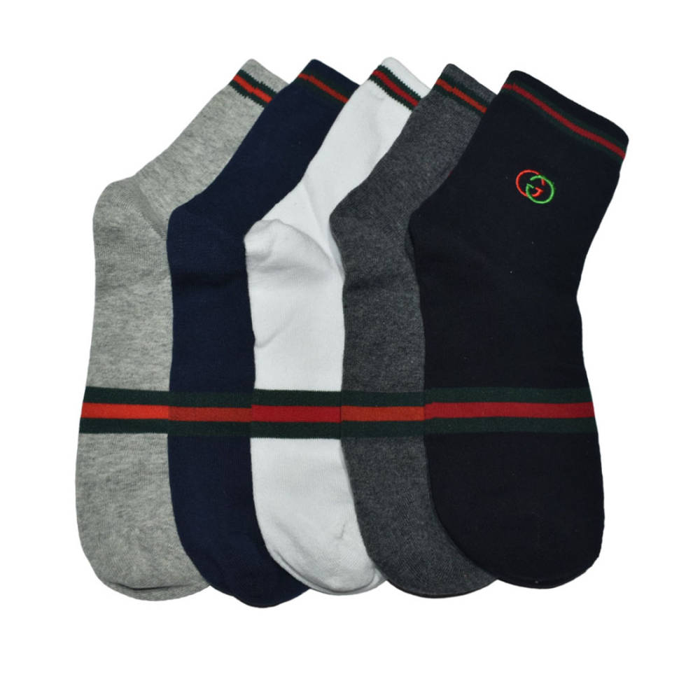 The Gucci Embroidered Logo Low Cut Premium Socks - Pack of 5 from Vogue Mine will help you enhance your sock game. These opulent, airy socks with the recognizable Gucci logo provide exceptional comfort and style. This high-quality bundle guarantees that you stay stylish from head to toe, whether you're wearing it for special occasions or regular wear. Enhance your look with classic style!