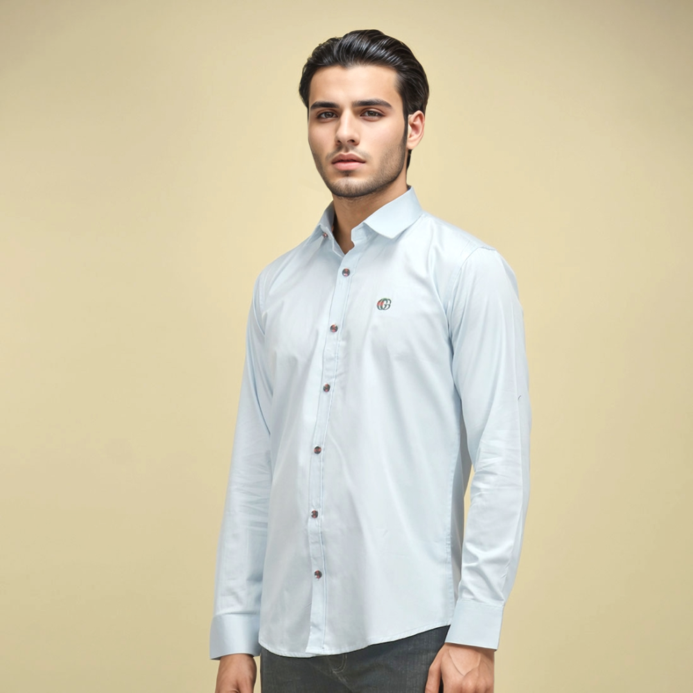 Elevate your style with the Gucci Embroidered Logo Sky Blue Premium Luxury Shirt from Vogue Mine. This exquisite shirt features intricate embroidery, showcasing the iconic Gucci logo. Crafted from the finest materials, it offers unmatched comfort and sophistication. Perfect for any upscale occasion, this shirt ensures you stand out with elegance and class. Experience true luxury with Gucci.