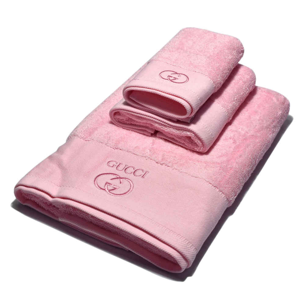 Indulge in luxury with the Gucci Embroidered Pink Premium Quality Towel Set from Vogue Mine. This exquisite set of three towels features delicate Gucci embroidery, offering a blend of elegance and supreme softness. Perfect for adding a touch of sophistication to your bathroom, these towels promise unparalleled absorbency and durability. Elevate your everyday essentials with Vogue Mine.
