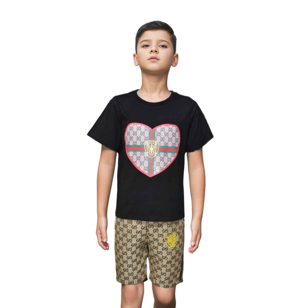 Gucci Heart Printed Premium Kids Co-ord Set, exclusively from Vogue Mine. Let your little one shine in style with this adorable ensemble featuring iconic Gucci heart prints. Crafted from premium materials, this set ensures comfort and durability. Perfect for playdates or special occasions, it's a statement piece that embodies luxury and fashion-forward charm. Elevate your child's wardrobe with Vogue Mine today.