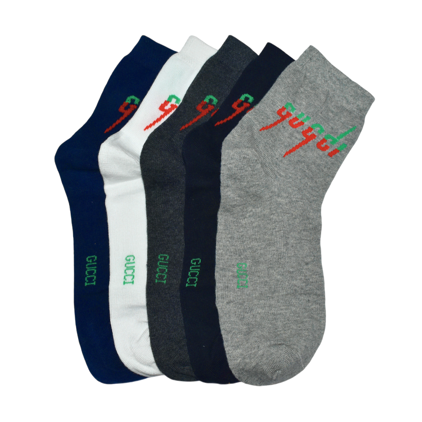 Crafted with premium quality materials, these Gucci Ankle Socks come in a convenient pack of 5. Expertly designed for ultimate comfort and durability, these socks are the perfect accessory to elevate your wardrobe. Upgrade your sock game with these stylish and high-quality socks from Gucci.
