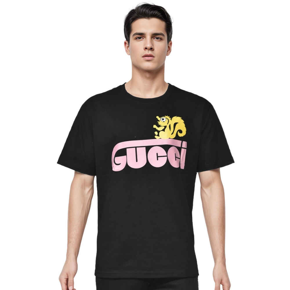 Gucci Retro Skunk Print Black T-shirt from Vogue Mine. This luxurious tee features a bold skunk graphic, merging high fashion with quirky charm. Crafted from premium cotton for ultimate comfort, it's perfect for making a statement. Embrace a blend of retro vibes and contemporary chic with this must-have addition to your wardrobe.