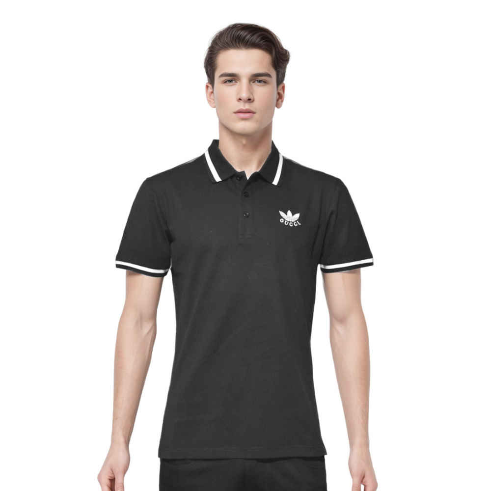 Introducing the **Gucci x Adidas Black Premium Quality T-shirt from Vogue Mine**. This exclusive collaboration blends Gucci's luxury flair with Adidas' sporty edge, delivering a stylish, high-quality tee. Crafted for comfort and elegance, it features a sleek black design perfect for any occasion. Elevate your wardrobe with this must-have fashion statement, available now at Vogue Mine.