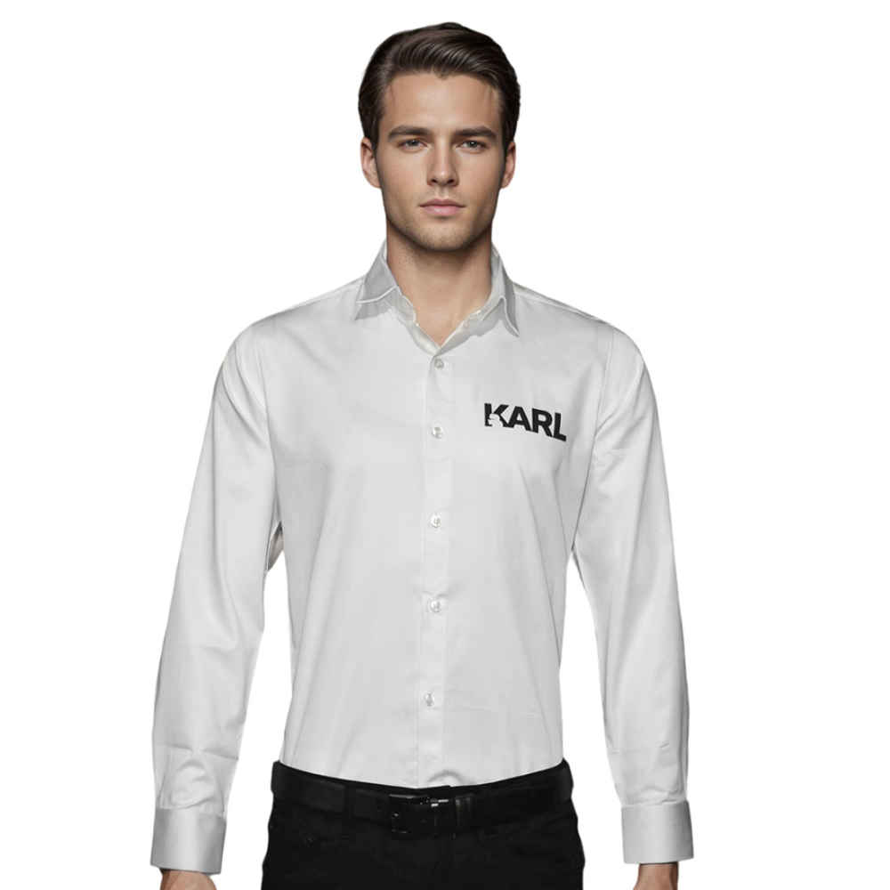This high-quality Karl Lagerfeld white shirt is the perfect addition to any professional or formal wardrobe. Made with premium materials, it guarantees comfort and durability while maintaining a sleek and polished appearance. Exude confidence and style with this timeless and versatile piece.