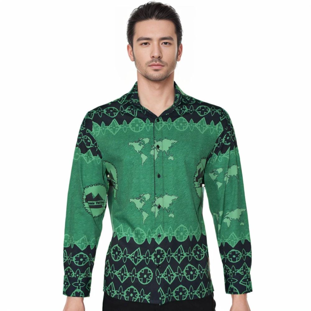 This Louis Vuitton Black & Green Premium Quality Shirt is a must-have for every fashion-forward man. Made with high-quality materials and impeccable craftsmanship, this shirt exudes style and sophistication. With its classic black and green design, it is perfect for any occasion and will elevate any outfit. Embrace the luxury and elevate your wardrobe with this premium shirt.