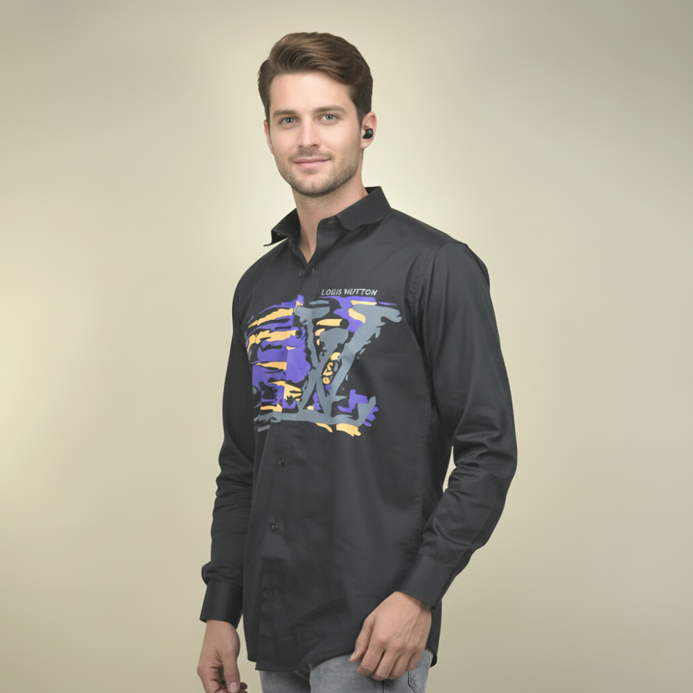 Elevate your style with the Louis Vuitton Black Premium Luxury Shirt from Vogue Mine. Crafted from the finest materials, this shirt combines timeless sophistication with modern elegance. The sleek black fabric and impeccable tailoring ensure a flawless fit, while subtle LV branding adds a touch of exclusivity. Perfect for making a statement, day or night.