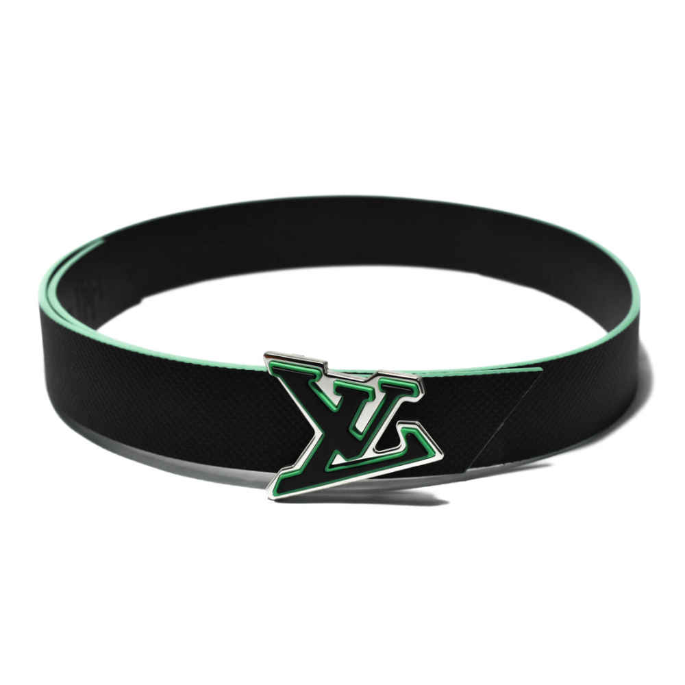 This Louis Vuitton belt features premium quality materials in a sleek silver and green design, making it an excellent choice for fashion-forward men. Stand out with confidence and style with this expertly crafted accessory.