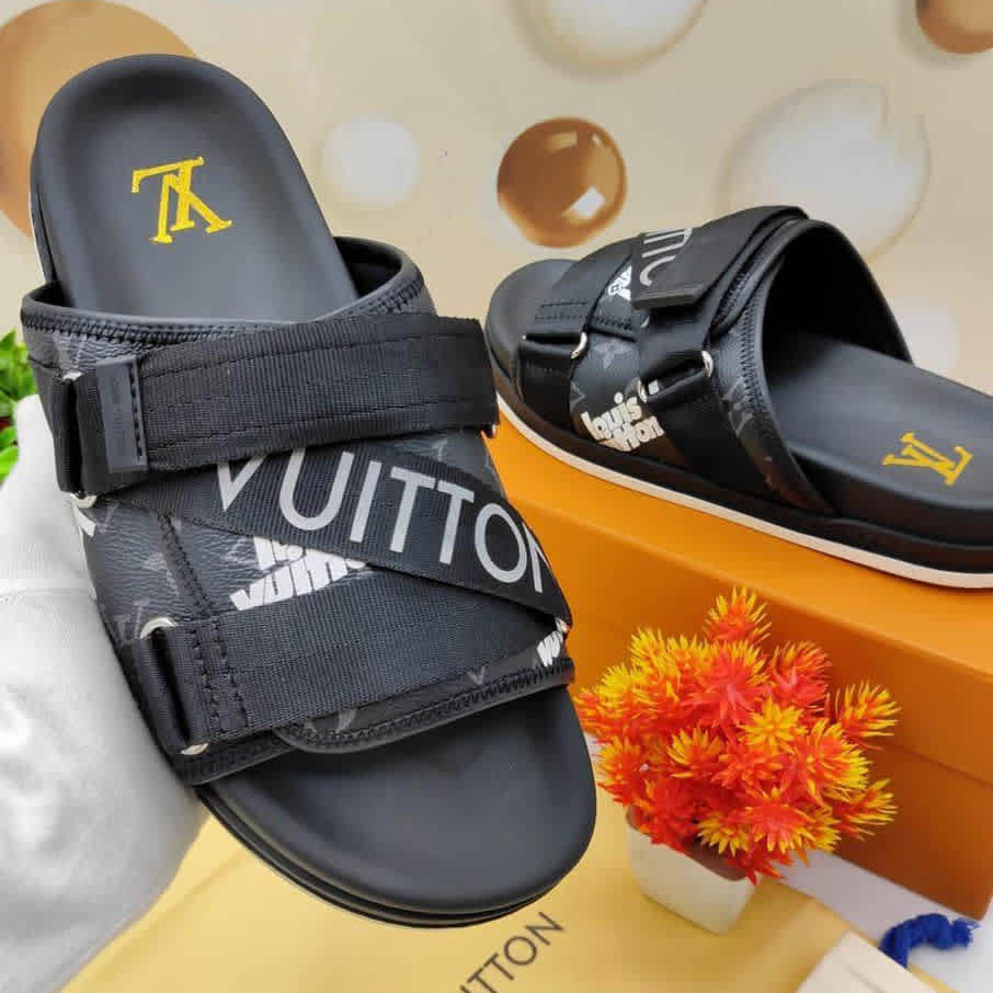 Vogue Mine presents the epitome of luxury with Louis Vuitton Black Premium Quality men's Flip-flops. Crafted with exquisite attention to detail, these flip-flops offer unparalleled style and comfort. Elevate your summer wardrobe with this iconic piece, showcasing sophistication and refinement at every step. Experience luxury redefined with Vogue Mine.