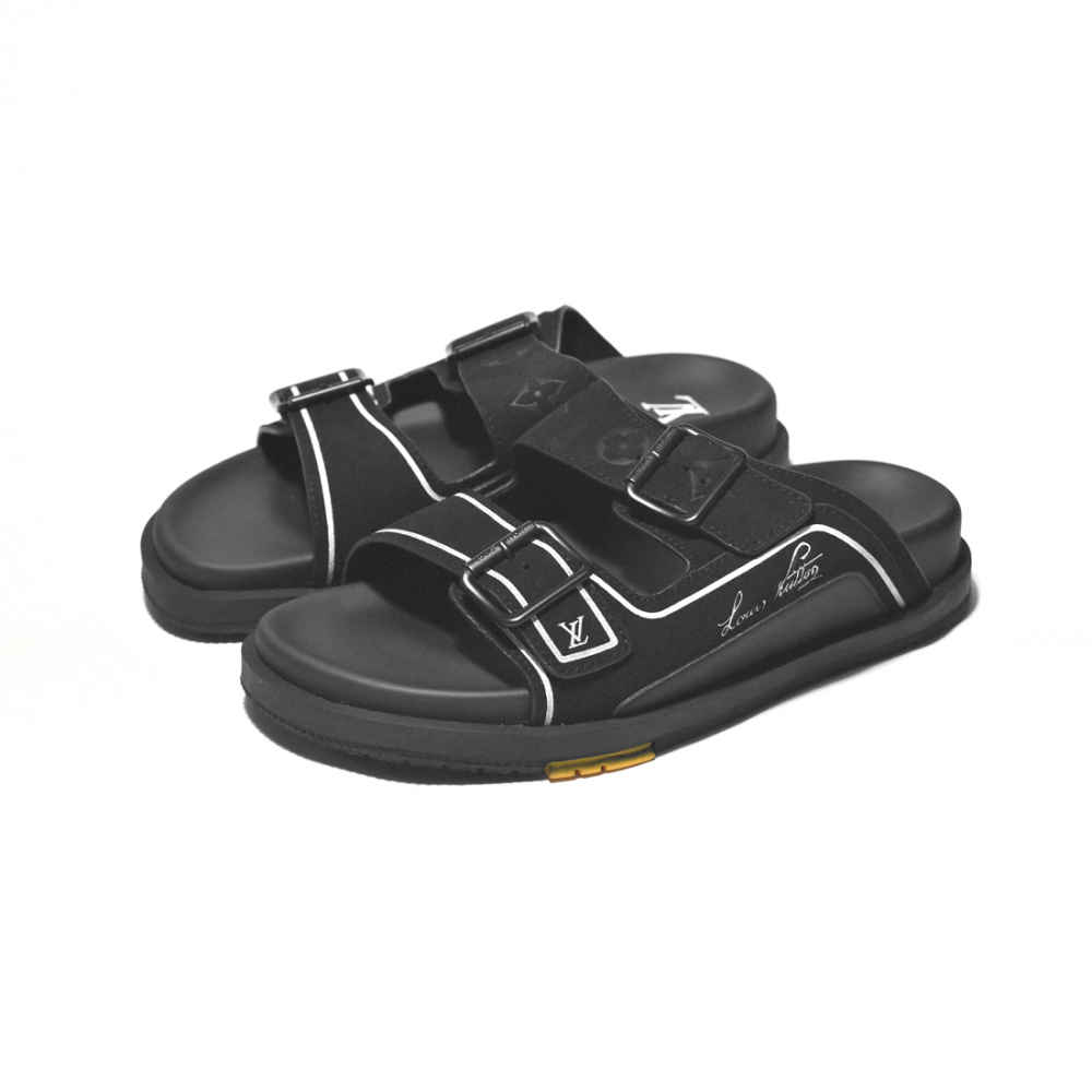 Indulge in luxury with Louis Vuitton's Black Premium Quality Men's Flip-flops from Vogue Mine. Crafted with meticulous attention to detail, these flip-flops boast unparalleled elegance and comfort. Elevate your casual attire with the iconic LV monogram and superior craftsmanship, embodying style and sophistication with every step.