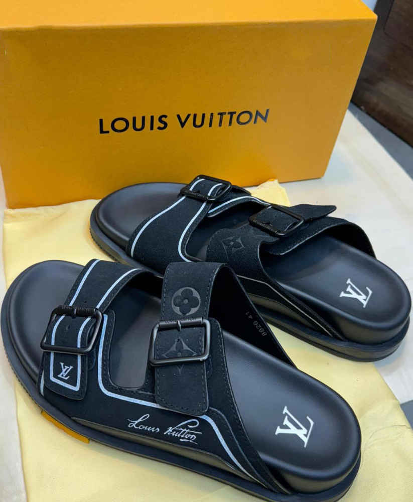 Indulge in luxury with Louis Vuitton's Black Premium Quality Men's Flip-flops from Vogue Mine. Crafted with meticulous attention to detail, these flip-flops boast unparalleled elegance and comfort. Elevate your casual attire with the iconic LV monogram and superior craftsmanship, embodying style and sophistication with every step.