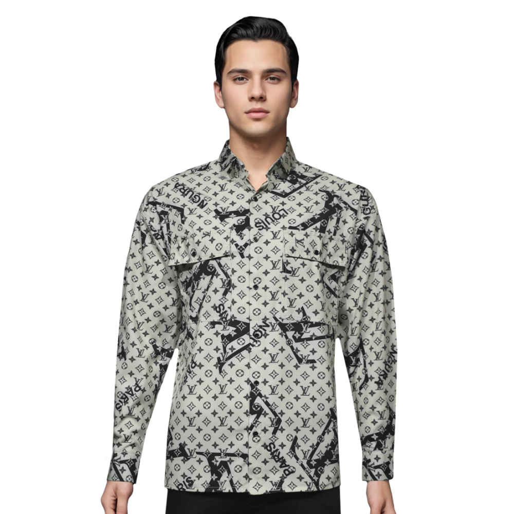 Vogue Mine Louis Vuitton Cream Premium Quality Designer Shirt, discover sophistication. This gorgeous shirt radiates elegance and flair because it is made of premium fabric. With its flawless design and timeless appearance, it's ideal for formal as well as informal settings. This high-quality item from Vogue Mine will elevate your wardrobe.