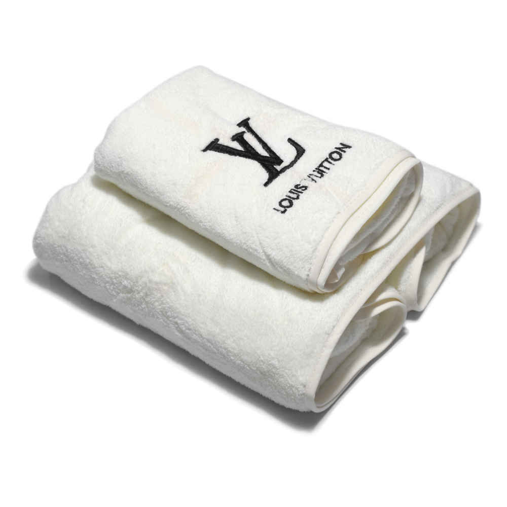 Elevate your home essentials with the Louis Vuitton Embroidered Logo Off White Premium Towel - Set of 2 from Vogue Mine. Luxuriously soft and stylish, these towels feature an exquisite Louis Vuitton logo embroidery, offering unmatched elegance and comfort. Perfect for adding a touch of sophistication to your bathroom decor. Experience premium quality with Vogue Mine's exclusive set.