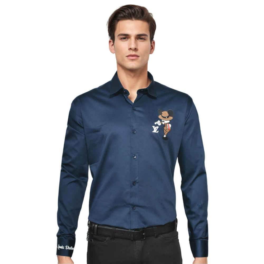 Elevate your style with the Louis Vuitton Mickey Mouse Print Navy Blue Shirt from Vogue Mine. This exclusive piece combines luxury fashion with playful charm, featuring a subtle Mickey Mouse design on premium navy blue fabric. Perfect for fashion-forward individuals, it’s a timeless blend of sophistication and fun, making it a standout addition to your wardrobe.