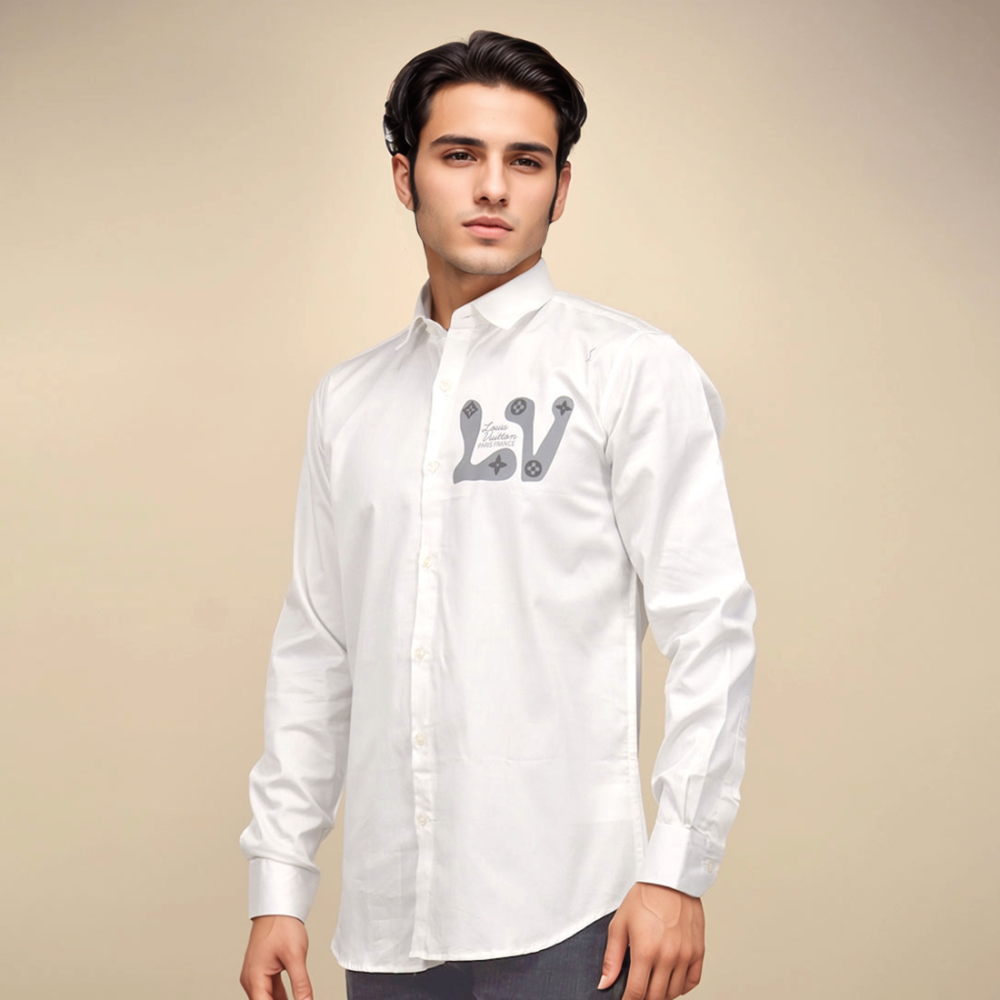 Louis Vuitton Monogram White Premium Cotton Shirt from Vogue Mine. Crafted from luxurious cotton, this shirt showcases the iconic LV monogram in a timeless white hue. Perfect for any occasion, its sophisticated design and exceptional comfort make it a must-have addition to your collection. Experience the epitome of style and elegance.