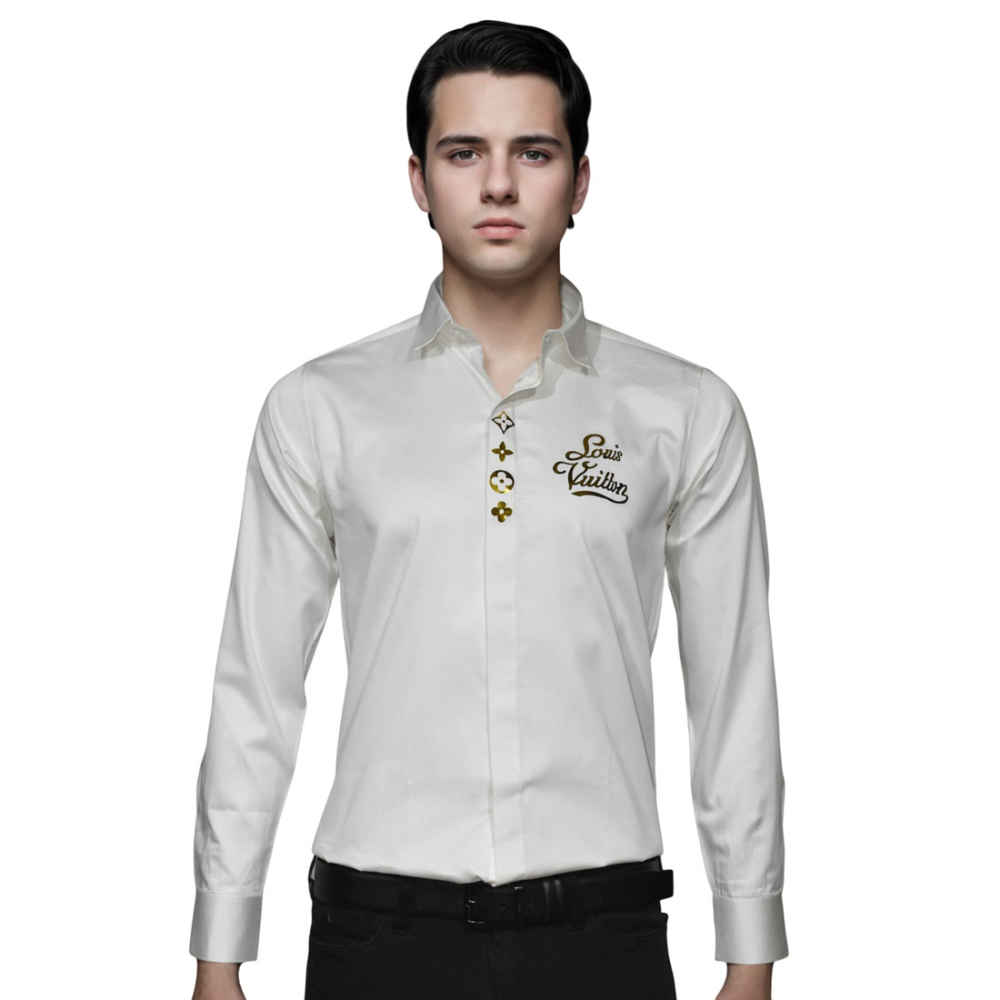 This Louis Vuitton White Premium Quality Shirt provides a sophisticated and polished look for men. Made with high-quality materials, this shirt offers a durable and timeless fashion statement. Elevate your style with this premium shirt from a trusted luxury brand.