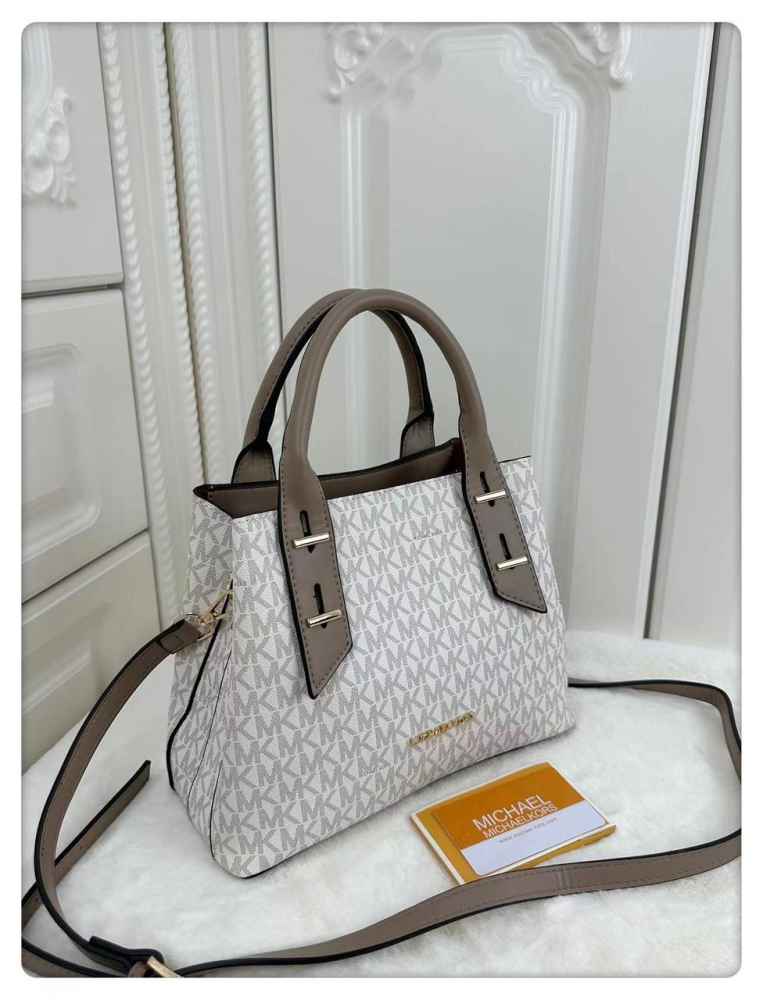 Buy Michael Kors Signature Boston Grey Leather Bag Online - Vogue Mine