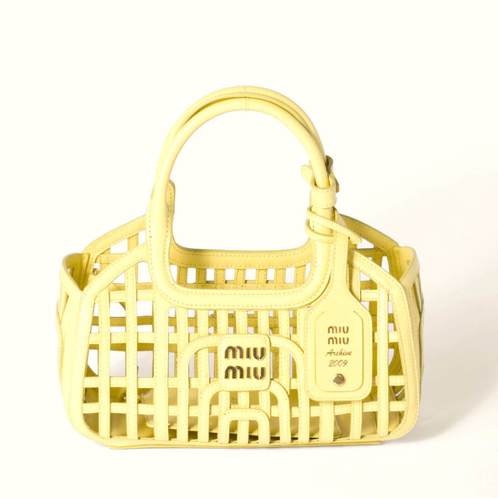 MIU MIU LEATHER TRIMMED LARGE BUCKET BAG WITH UTILITY POUCH INSIDE