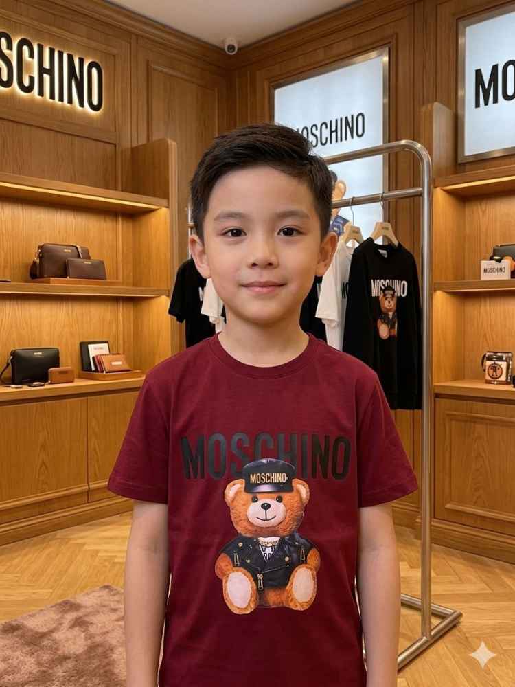Vogue Mine offers the Moschino Teddy Print Black Premium Kids T-shirt, a chic addition to any young fashionista's wardrobe. Crafted with quality and style in mind, this tee features the iconic Moschino teddy bear motif, adding a playful yet sophisticated touch to any ensemble. Fashion-forward kids rejoice with this must-have piece!