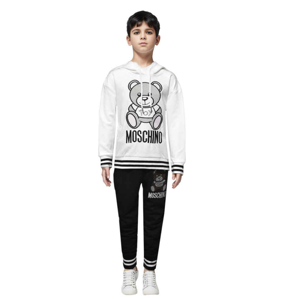 Discover the Moschino White Embroidery Teddy-Bear Kids Co-ord Set from Vogue Mine. Crafted with meticulous attention to detail, this stylish ensemble features delicate embroidery and the iconic Moschino teddy-bear design. Perfect for any occasion, this co-ord set combines comfort with high-fashion flair, ensuring your child stands out with sophistication and charm. Ideal for trendy, fashion-forward kids.
