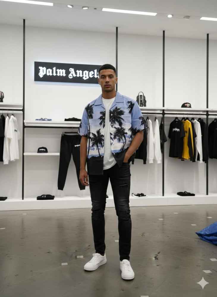 This Palm Angel short-sleeved shirt boasts superior quality and a bold, printed design for the modern man. Elevate your style with this premium shirt, expertly crafted with top-of-the-line materials. Stay cool and comfortable while making a statement. Perfect for any occasion.