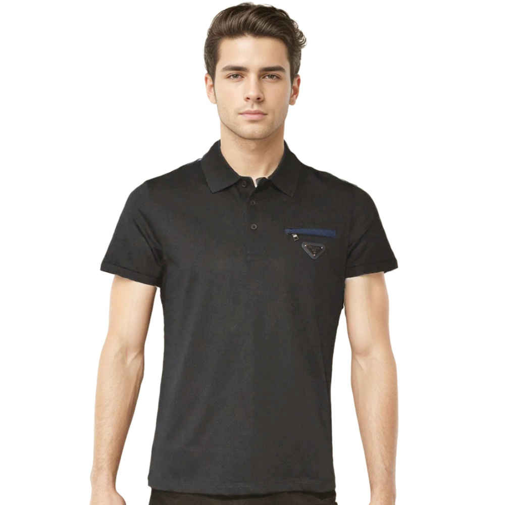 Experience timeless style with the Prada Black Premium Stretch Cotton Polo T-shirt, exclusively at Vogue Mine. Crafted from high-quality stretch cotton, this polo offers unparalleled comfort and durability. Its sleek black design and signature Prada detailing make it a versatile addition to any wardrobe. Elevate your fashion game with this iconic piece.