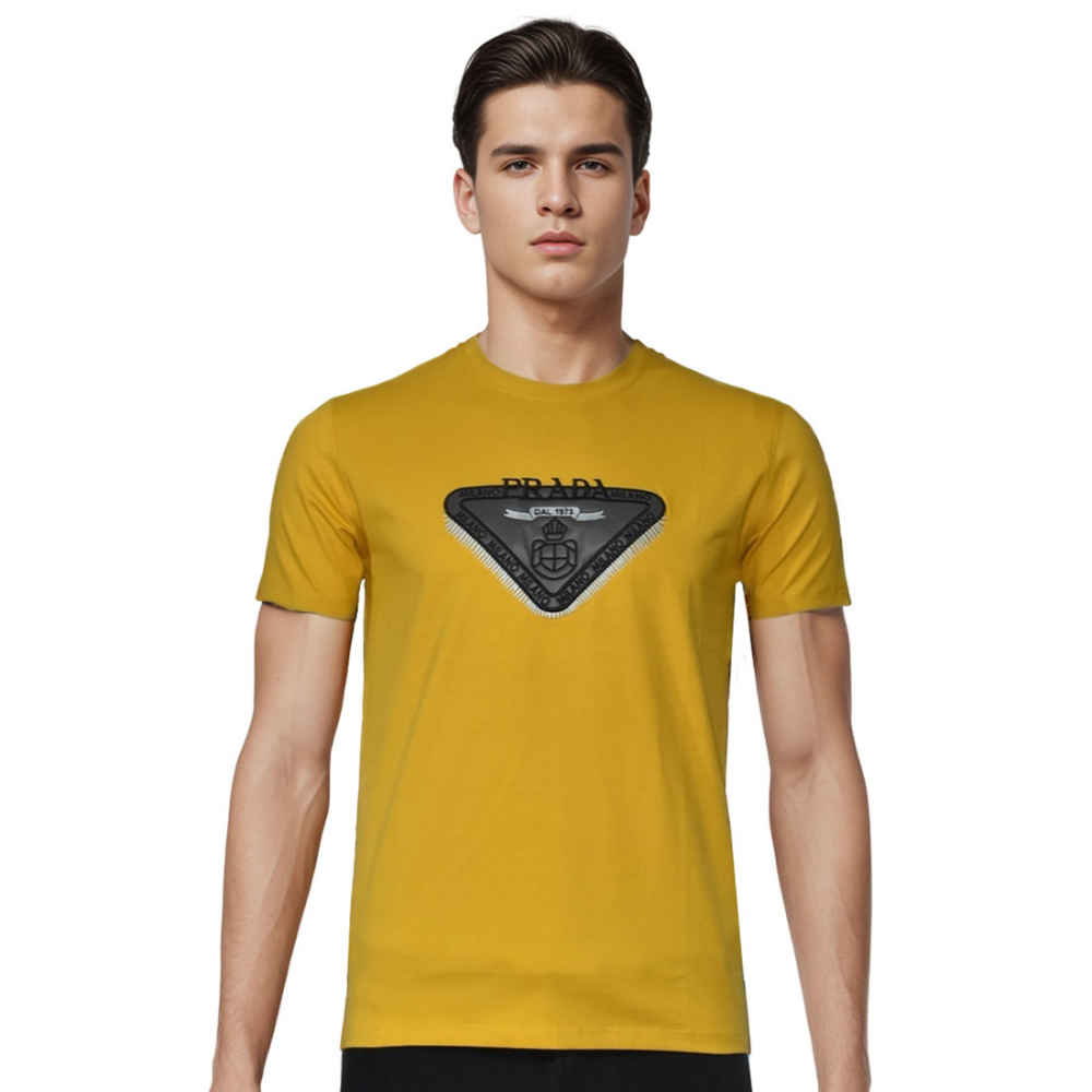Prada Embroidered Logo Yellow Cotton T-shirt from Vogue Mine. Crafted from premium cotton, this vibrant yellow tee features Prada's iconic logo elegantly embroidered on the chest. Perfect for casual outings or making a statement, it combines luxury and comfort in one stunning piece. Step out in confidence and showcase timeless fashion.