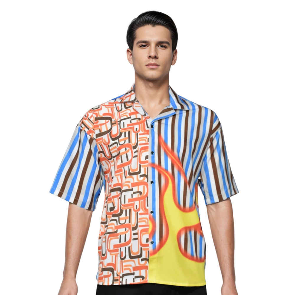 The Prada Exclusive Flame Pattern Drop Shoulder Premium Quality Shirt offers a sleek and stylish option for any man. With its unique flame pattern and premium quality materials, this shirt is both eye-catching and comfortable. Whether for a night out or a day at the office, this shirt is sure to make a statement.