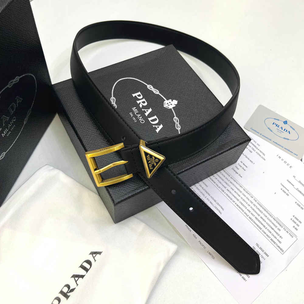 Buy Prada Milano Gold Triangle Black Belt Online in India - Vogue Mine