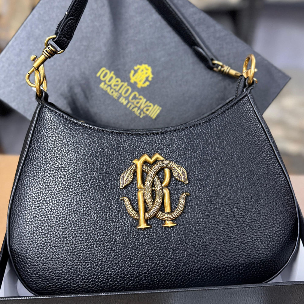 ROBERTO CAVALLI VINTAGE RC OXIDISED LOGO SHOULDER BAG