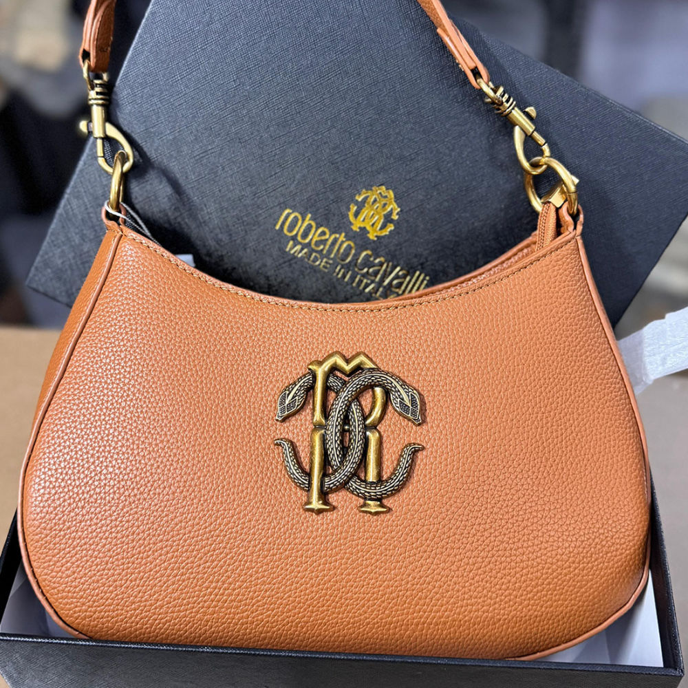 ROBERTO CAVALLI VINTAGE RC OXIDISED LOGO SHOULDER BAG