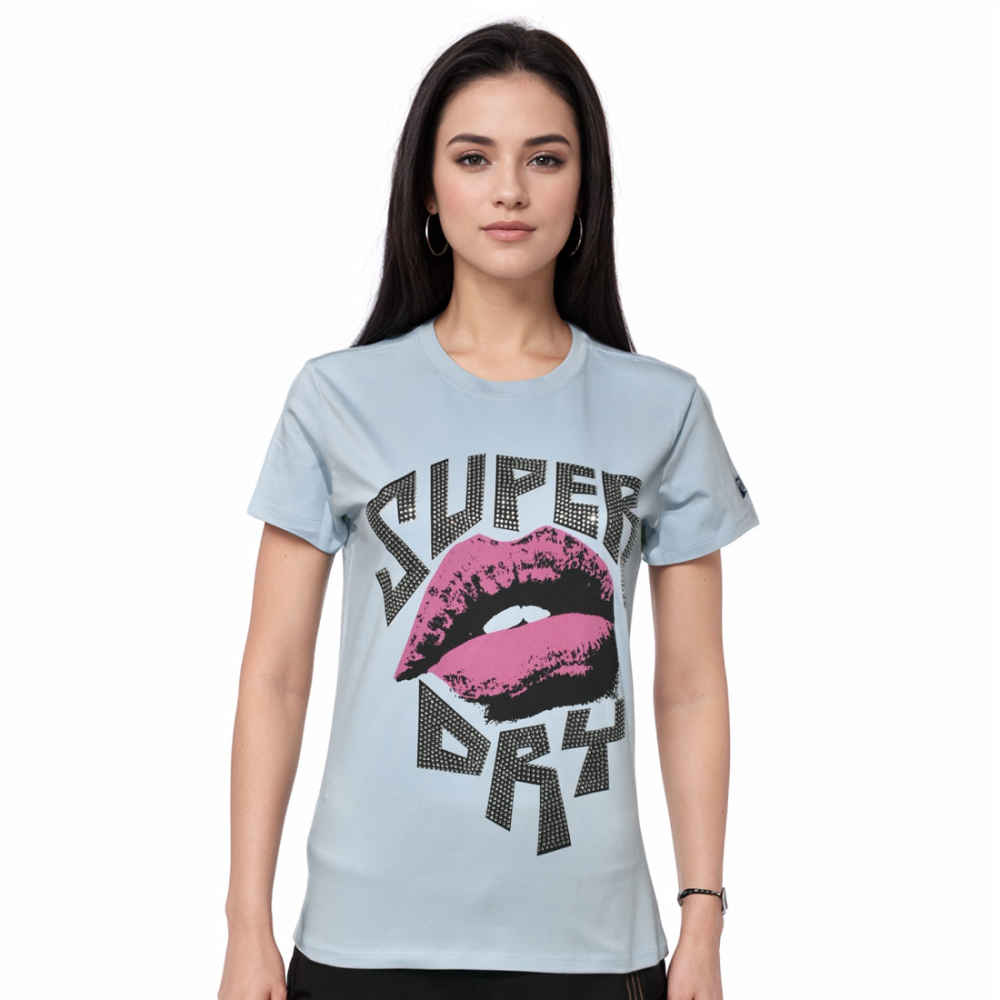 This Superdry T-shirt is designed for women and boasts premium quality in a stunning sky-blue color. Made with comfort and durability in mind, it's the perfect addition to any wardrobe. Enjoy the superior fit and feel of this must-have piece for your everyday wear.