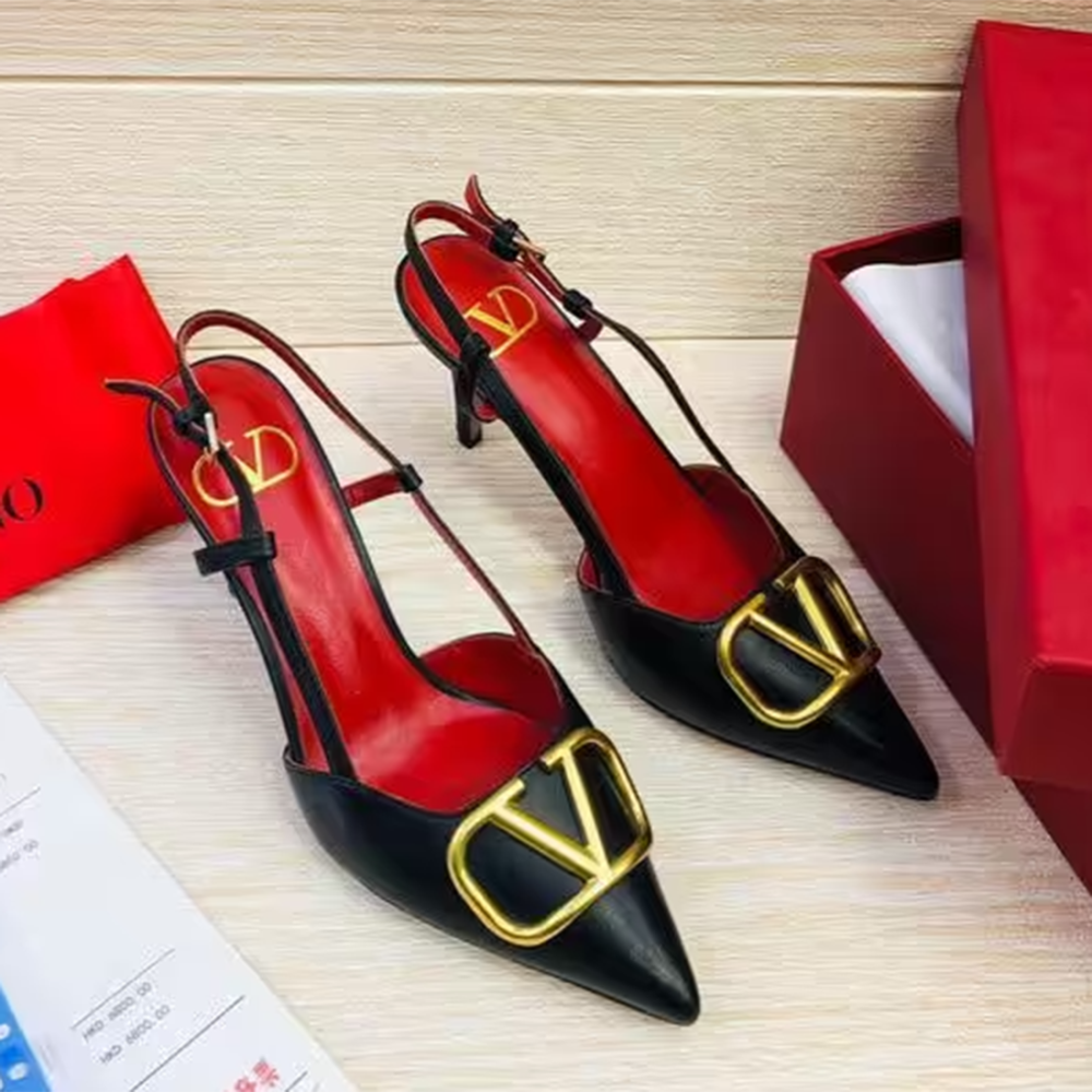Buy Valentino Vlogo Signature Black Leather Premium Quality Heel Sandals - Vogue Mine