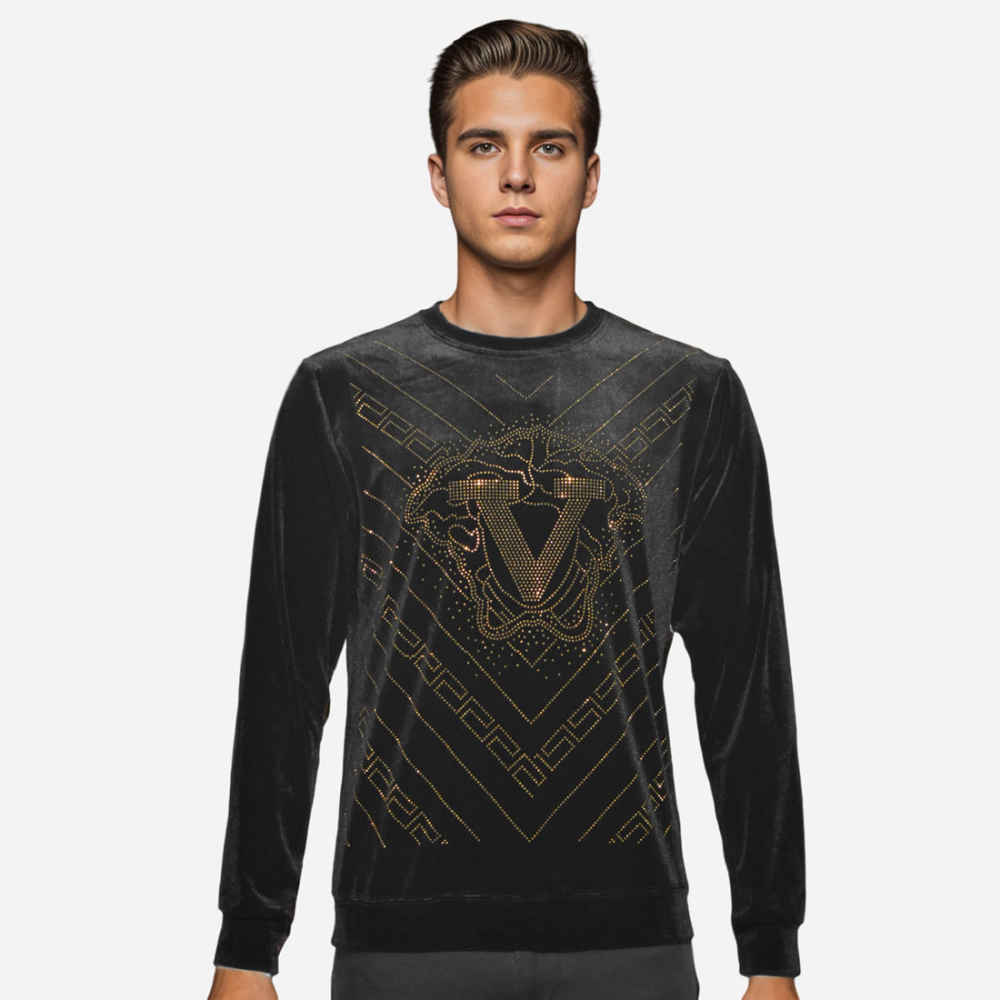 Step up your style game with our Velvet High-End Black Quality Sweatshirt for men. Made with high-quality velvet fabric, this sweatshirt offers both comfort and luxury. Its sleek black design makes it versatile and perfect for any occasion. Upgrade your wardrobe with this premium sweatshirt.