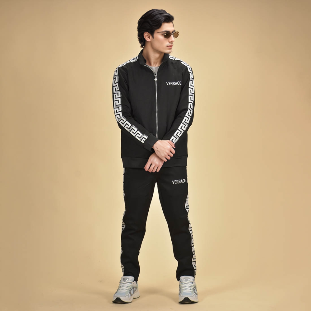 Elevate your style with the Versace Black Premium Luxury Tracksuit from Vogue Mine. Crafted from high-quality materials, this tracksuit blends comfort and opulence. Its sleek design features signature Versace detailing, offering a modern edge. Perfect for casual elegance, it ensures you make a statement, whether lounging or stepping out. Experience the pinnacle of luxury fashion with this must-have ensemble.