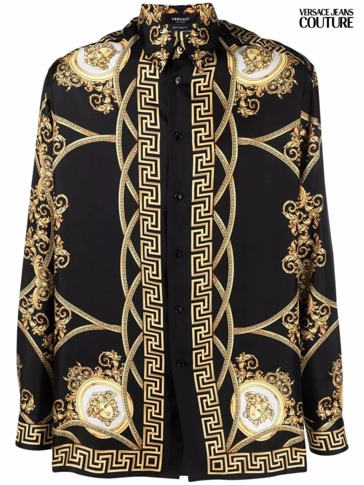 This VERSACE shirt combines style and comfort, making it perfect for leisurely, relaxing days. Made from stretch cotton, it features long sleeves, digital print logos.