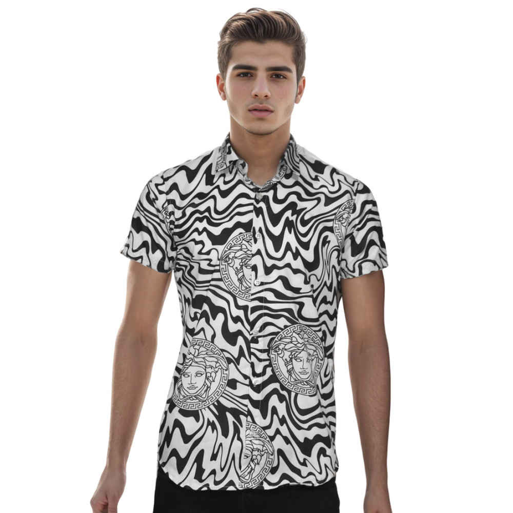 Indulge in unparalleled luxury with our Versace Black & White Premium Shirt from Vogue Mine. Crafted to perfection, this shirt embodies sophistication and style. The iconic Versace design, coupled with premium materials, ensures unparalleled comfort and durability. Elevate your wardrobe with this timeless piece, exuding elegance and refinement at every turn. Make a statement with Versace, exclusively at Vogue Mine.