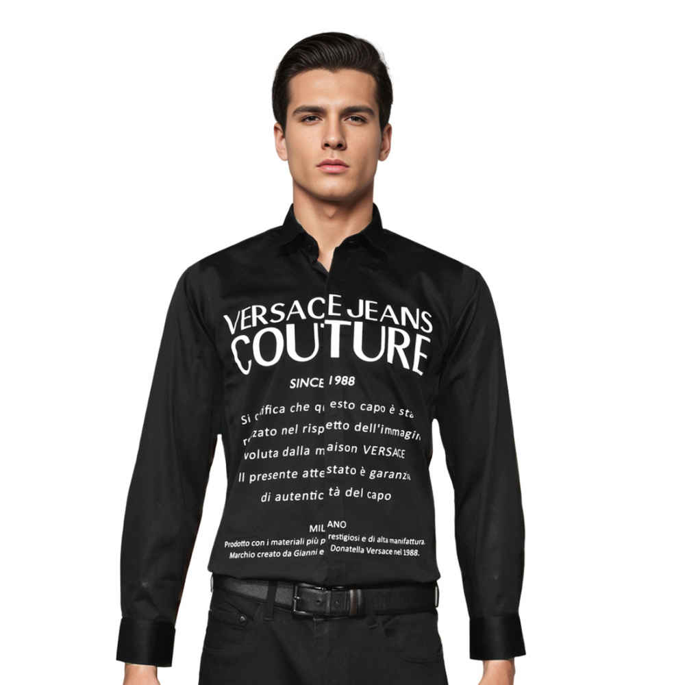 Elevate your wardrobe with the Vogue Mine collection of premium quality shirts. Made with Versace Jeans Couture Black fabric, these shirts exude elegance and style. Perfect for any occasion, these versatile shirts are a must-have for any fashion-forward individual.