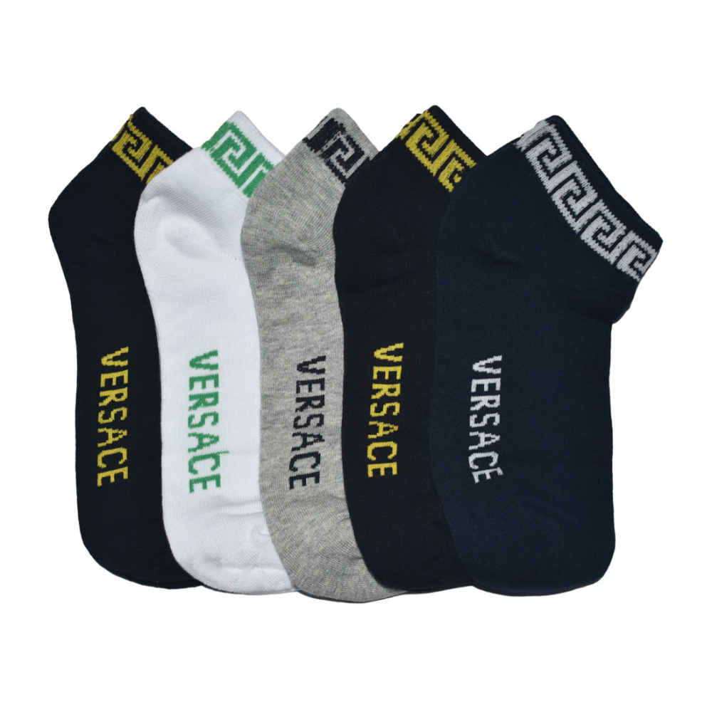 Versace Low Anklet Premium Luxury Socks from Vogue Mine will elevate your look. These luxuriously comfortable socks with their signature design are made from the best materials. They skillfully combine elegance and fashion with their iconic Versace emblem and low-ankle cut. They are unparalleled in beauty and sophistication, making them ideal for making a statement with any ensemble.