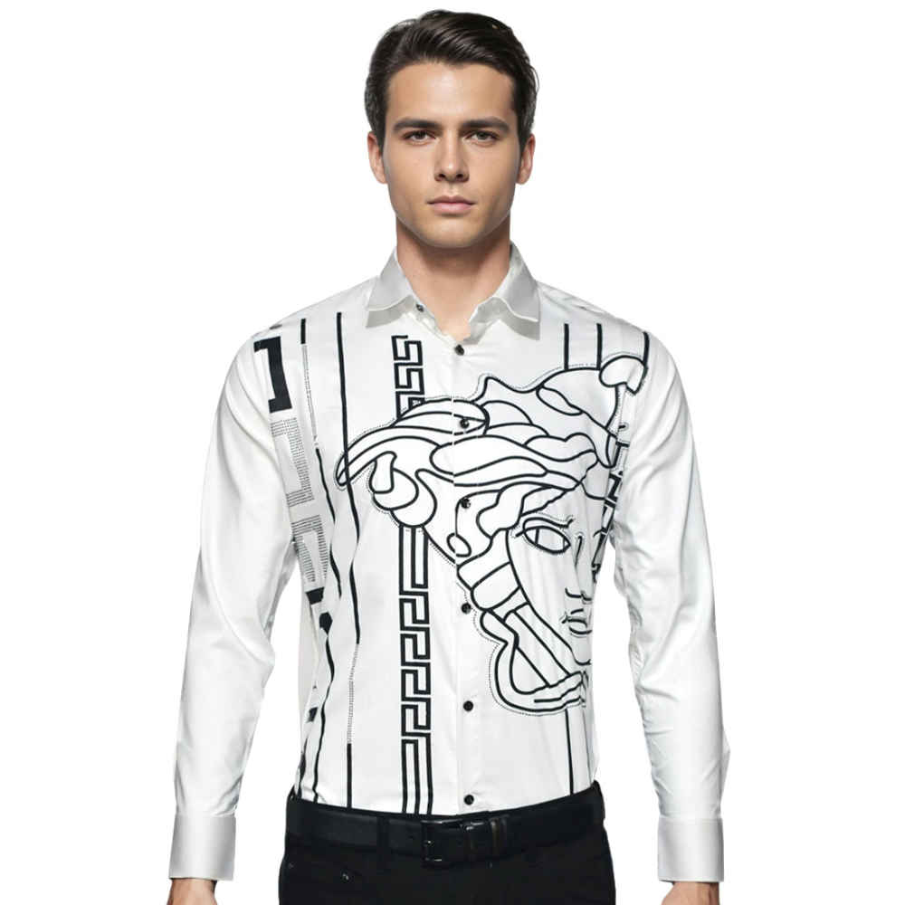 Elevate your wardrobe with the Versace White Premium Quality Shirt. Made with high-quality materials, this shirt exudes luxury and sophistication. With its classic design and superior craftsmanship, this shirt is sure to make a statement on any occasion. Upgrade your style and stand out from the crowd with this premium shirt from Versace.