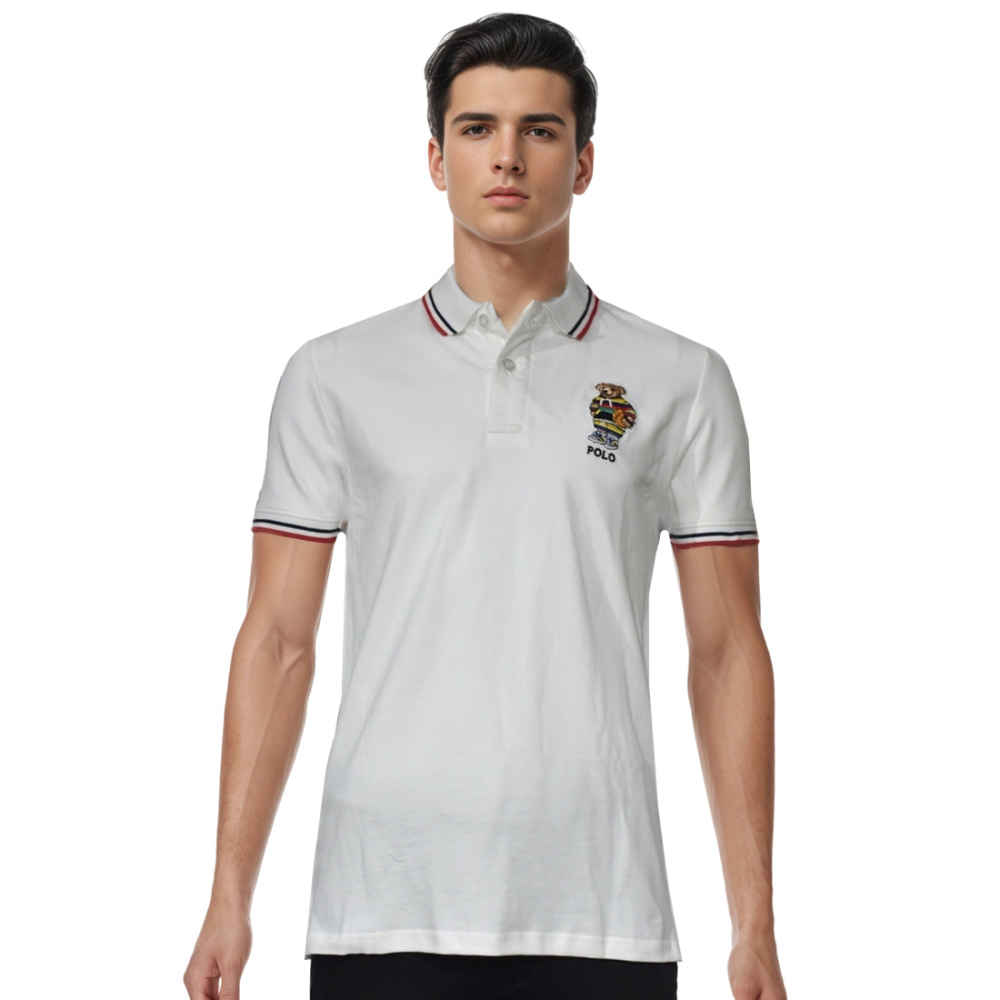 The White Bear Embroidered Premium Polo T-shirt from Vogue Mine will enhance your look. This stylish polo is made of premium fabric and has a sophisticated white bear embroidery that exudes comfort and sophistication. It's a wardrobe must that looks well for both semi-formal and casual events. Explore fashion like never before and fine craftsmanship right now.